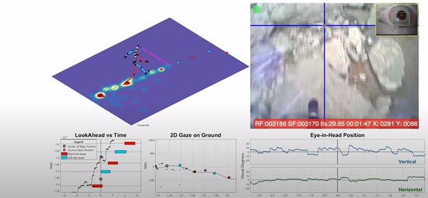 The study found that, in rough terrain, humans tend to plan about two steps ahead. Across different kinds of terrain, subjects adjusted where they were looking and what they were looking at “to ensure that they would always have a consistent degree of certainty about the upcoming path over the next 1.5 [seconds].”